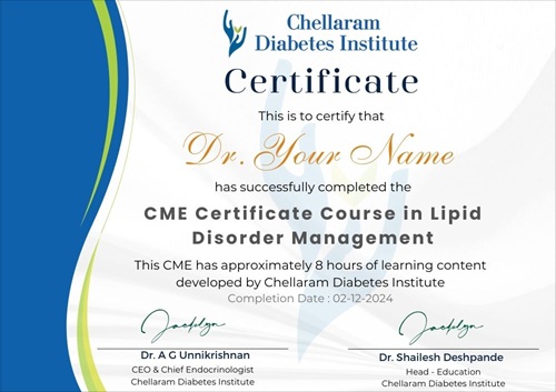 Upon successful completion of the course, you will receive a Certificate of Completion from Chellaram Diabetes Institute, recognizing your advanced knowledge and skills in diabetes care and management.