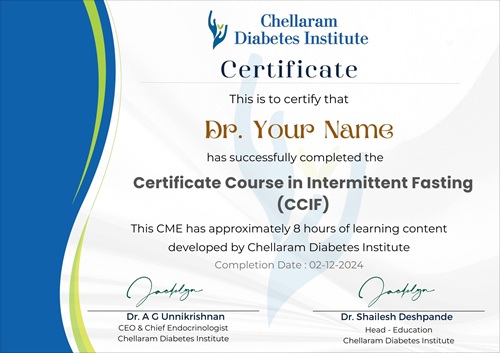 Upon successful completion of the course, you will receive a Certificate from Chellaram Diabetes Institute, recognizing your expertise in the specific area of the course.