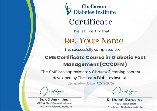 Upon successful completion of the course, you will receive a CME Certificate in Diabetic Foot Management from Chellaram Diabetes Institute, recognizing your expertise in managing diabetic foot complications.